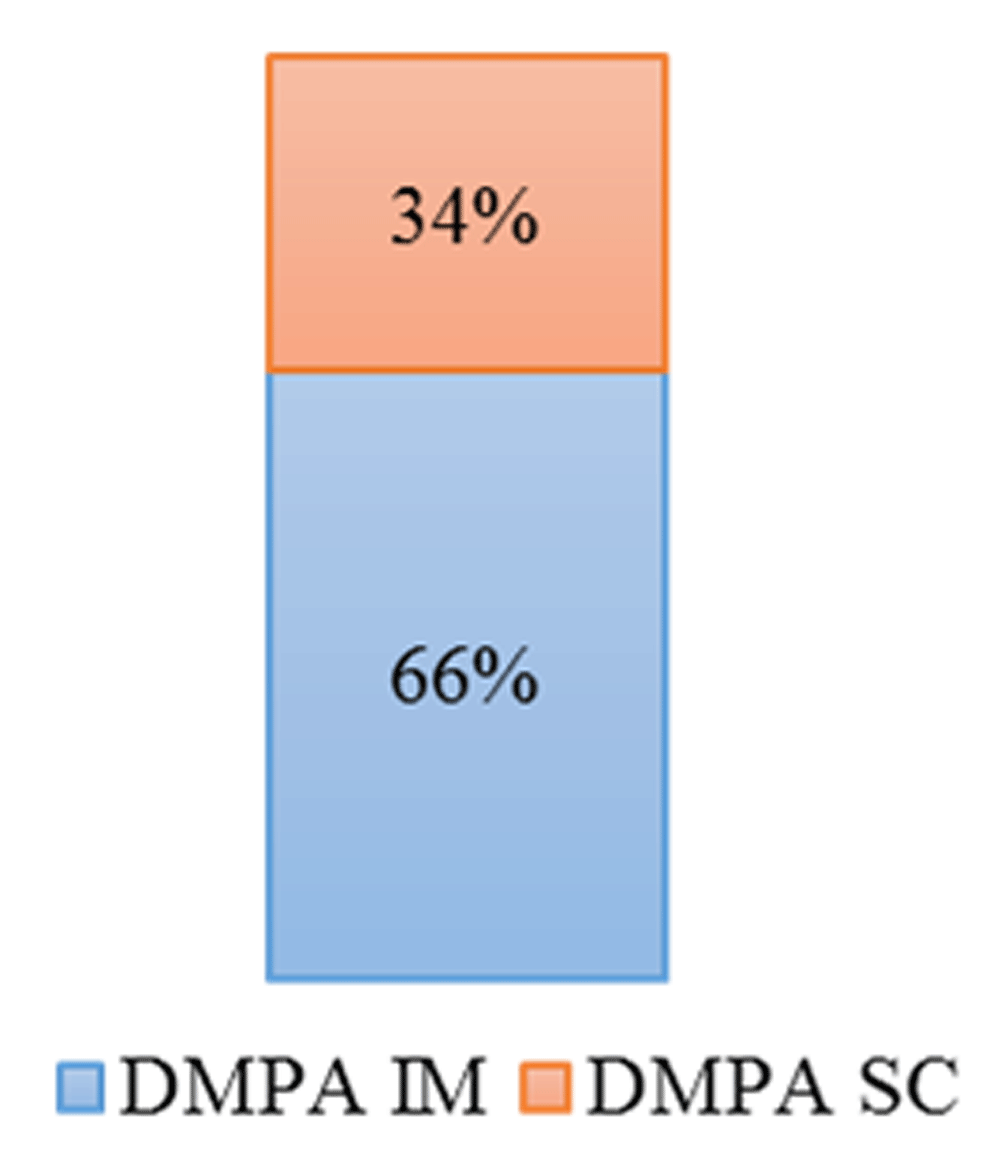 A total of 6,190 injectable contraceptives were provided during the pilot period. DMPA-SC accounted for 34% (i.e., 2,100 DMPA-SC doses) of the total injectable contraceptives administered. Figure 2 below shows DMPA-SC doses provided as a proportion of total injectable contraceptives.