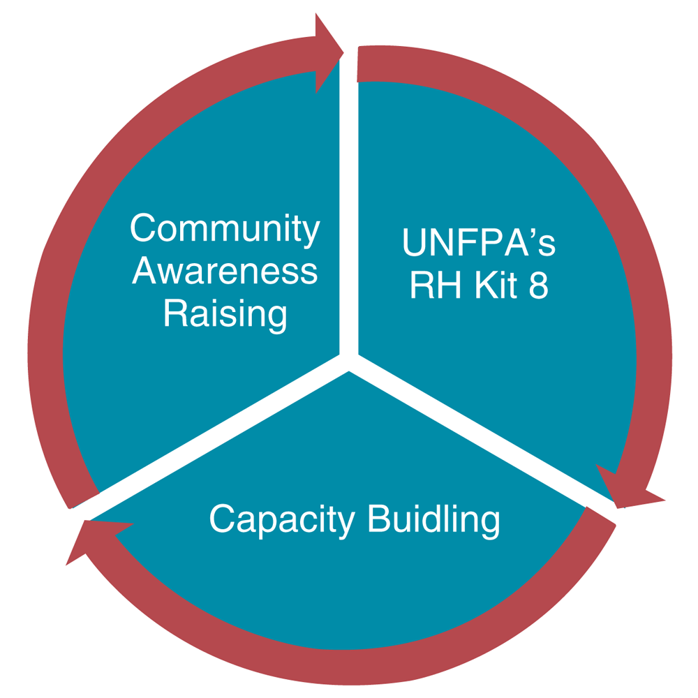 To conclude, intervention packages or measures which can overcome the local challenges both at community and facility levels, in an integrated fashion, are urgently needed in Bangladesh. A trial intervention package called RHCC (positioning UNFPA’s Reproductive Health Kit 8, Capacity building of untrained health workers; and Community awareness) (see Figure 4) led by the University of Leicester in collaboration with IPPF-SAR, the Upazila Health Complex management team, icddr,b and Data Management Aid, demonstrated impact by enhancing management skills and ensuring reproductive health care services were available during the flood of 2017 in Belkuchi (see Ray-Bennett et al., 2019 [forthcoming]). Context specific integrated interventions, such as RHCC, are essential to promote disaster resilience in the primary health care sector and to support sustainable development.