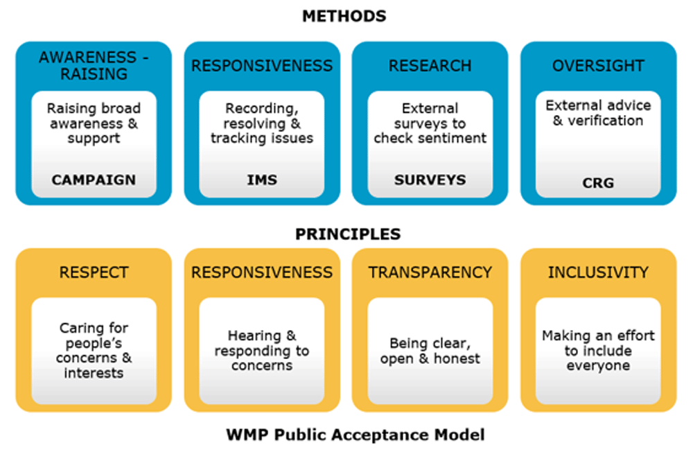 Before the release of mosquitoes with Wolbachia, WMP carried out communication and community engagement actions in the areas where it operates. To this end, it elaborated the Public Acceptance Model (PAM), which is currently the framework that guides the countries that participate in this initiative. PAM was designed to protect the rights of communities through rigorous processes and protective measures appropriate to the perceived risks of the intervention. These measures are underpinned by the principles of respect, transparency, inclusivity and responsiveness27–29. PAM has the following pillars: 1) the implementation of communication and engagement campaigns, whose objective is to generate knowledge and engagement of the population regarding the WMP Wolbachia Method; 2) the creation of a Community Reference Group, with the objective to create a dialogue relationship with the community through this consultative committee formed by representatives from different sectors in the areas in which it operates; 3) the implementation of an incident registration system, which has the role of registering and answering the population’s doubts and concerns regarding the method; and 4) conducting community surveys, the main objective of which is to measure the level of awareness and approval of the method by the community. Figure 4 illustrates the PAM.
