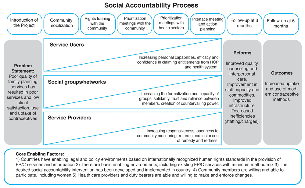 Although there are some data supporting the implementation of social accountability interventions for FP/C3,11,13, there remains little robust evidence documenting and demonstrating the effects of these changes as applied to FP/C service delivery.