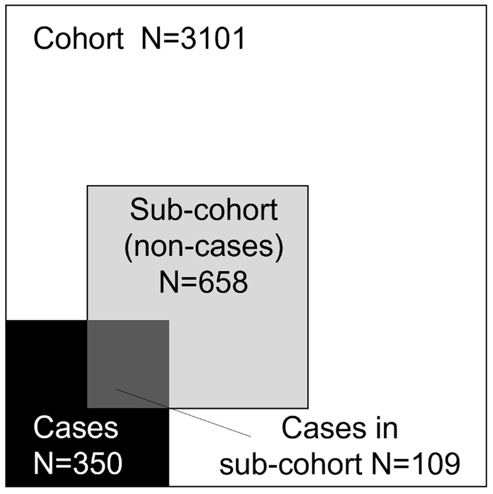 A nested case-cohort design drawing from a larger cohort provides estimates that are representative of the entire cohort while also yielding slightly more statistical power than a case control design59. Case-cohort selection involves a random subsample of the original cohort (sub-cohort), independently of how cases are defined, followed by additional inclusion of all cases outside the sub-cohort creating the case-cohort set60. This results in overrepresentation of the cases in the case-cohort set compared to the original cohort which is dealt with in analysis by weighting. A further advantage of this design over a case-control design is that the sub-cohort can also be used in analysis of other outcomes. In CHAIN, this could include outcomes of readmission or growth among survivors in future analyses, as well comparisons between acutely ill children and community children and between nutritional strata among acutely ill children in the current analysis.