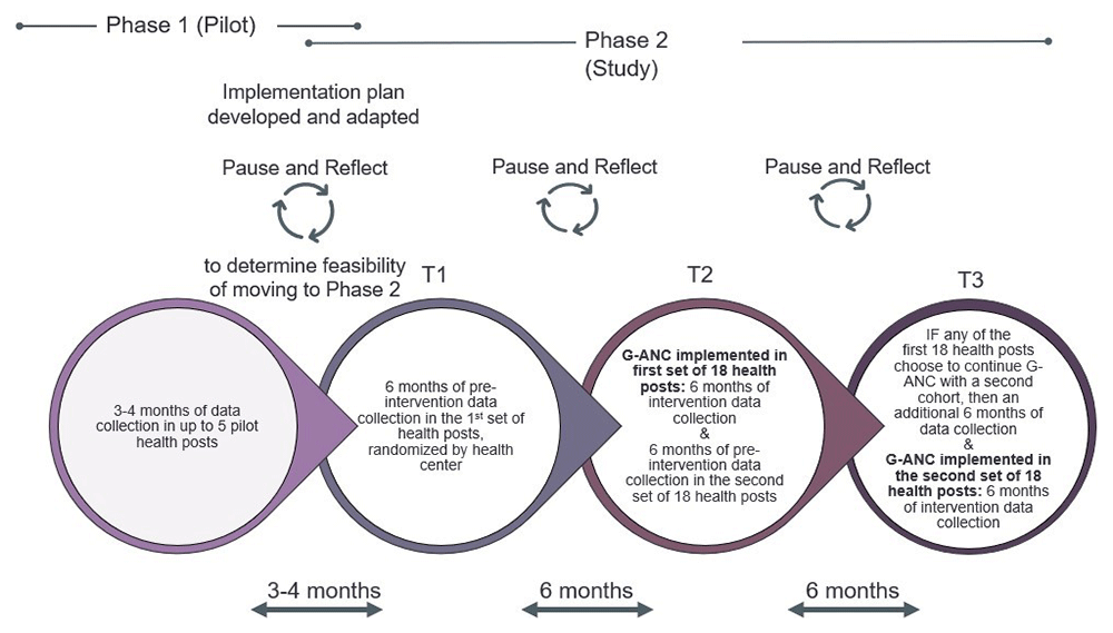 G-ANC at the health post level is a new intervention, therefore the study will be rolled out using a phased approach.