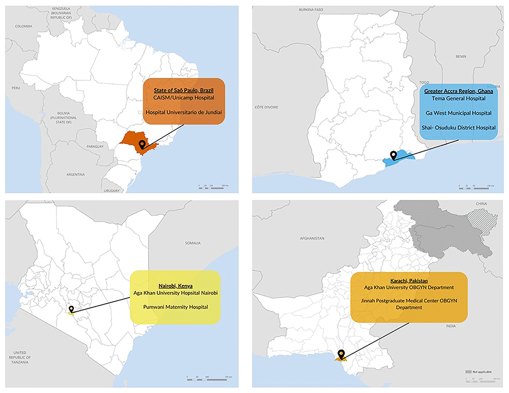 Ethical review and approval for the 4-country study was sought from the Johns Hopkins Bloomberg School of Public Health Institutional Review Board (Ref. IRB00020864, approved 2023-07-06; Ref. IRB00020850, approved 2023-09-12; Ref. IRB00020861, approved 2023-09-27; Ref. IRB00020866, approved 2024-02-01), and the World Health Organization’s Research Ethics Review Committee (Ghana: Ref. CERC.0193A, approved 2023-06-05; Kenya: Ref. CERC.0193B, approved 2023-06-19; Pakistan: Ref. CERC.0193C, approved 2023-09-19) or the Pan American Health Organization (Brazil: Ref. PAHOERC.0633.01, approved 2023-03-24),. Each country protocol also underwent scientific review through the WHO/HRP Research review research panel (Switzerland). Individual country teams sought and obtained approvals for each country-level research plan with the following entities: Committee of Research Ethics from the University of Campinas (Brazil: Ref. 63968222.1.1001.5404, approved 2023-04-10), Jundiaí University Institutional Review Board (Brazil: Ref. CAAE 63968222.1.2001.5412, approved 2023-07-07), Ghana Health Service Ethics Review Committee (Ghana: Ref. 028/03/23, approved 2023-05-23), The Aga Khan University’s Institutional Scientific and Ethics Committee (Kenya: Ref. 2023/ISERC-17, approved 2023-06-19), Pumwani maternity hospital ethics review committee (Kenya: Ref. PMH/CEO/76/0785/2023, approved: 2023-12-13), the National Council for Science Technology and Innovation (Kenya: Ref. NACOSTI/P/23/29152, approved 2023-09-27), Nairobi County Research and Development Committee (Kenya: Ref. NCC/CS/RPD/84/2023, approved 2023-11-27), National Bioethics Committee (Pakistan: Ref. No.4-87/NBCR-1029/23, approved 2024-01-03), and The Aga Khan University Institutional Ethics Review Committee (Pakistan: Ref. 2023-8633-25854, approved 2023-07-27), and the Institutional Review Board at Jinnah Postgraduate Medical Center (Pakistan: Ref. F.2-81/2023-GENL/182/JPMC, approved 2023-12-14).
