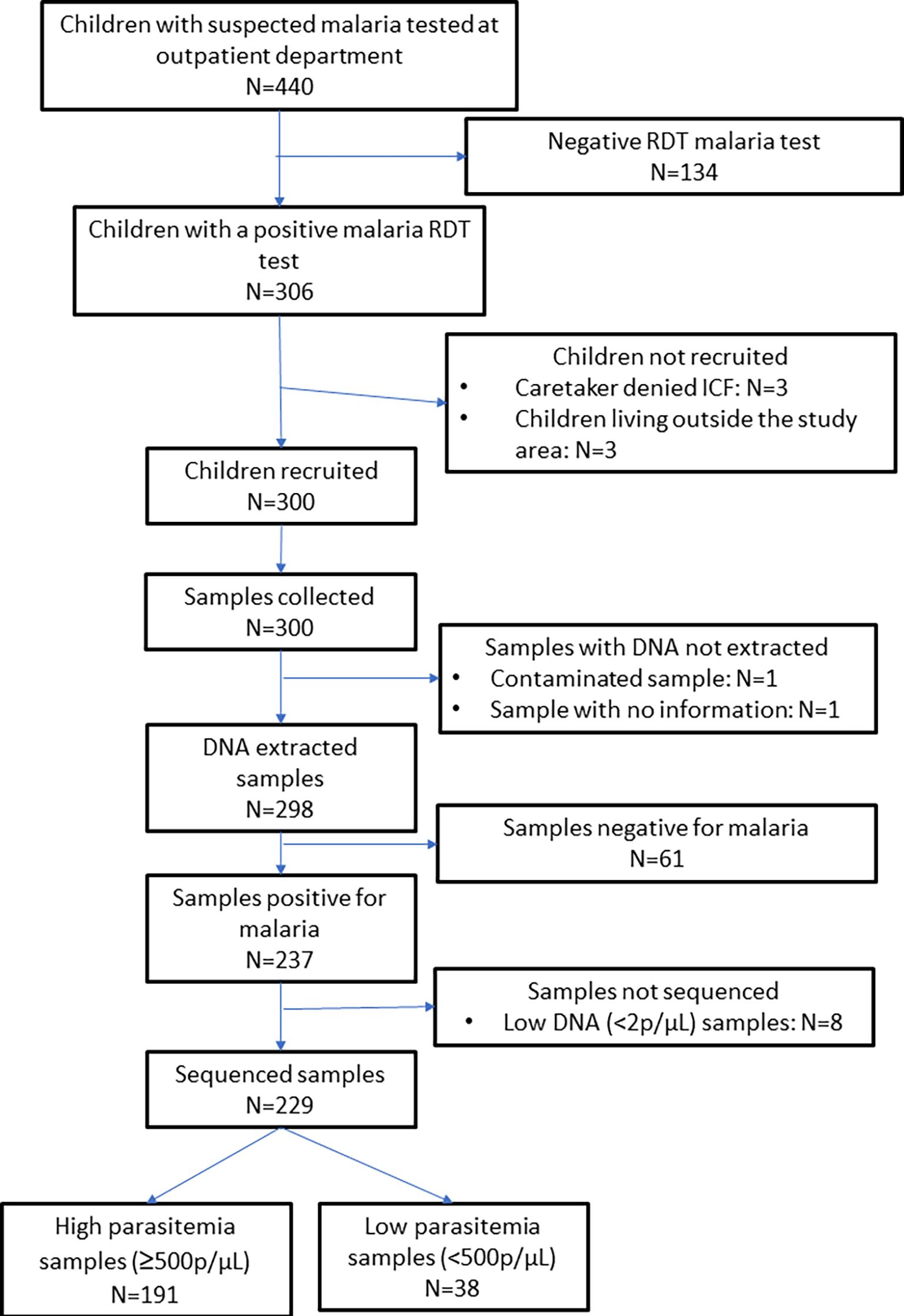 ICF: Informed consent form, RDT: Rapid diagnostic test.